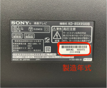 テレビの製造年式の確認は、テレビ背面中央部もしくは、背面左下等(TOSHIBA)に記載されています。こちらよりご確認ください。